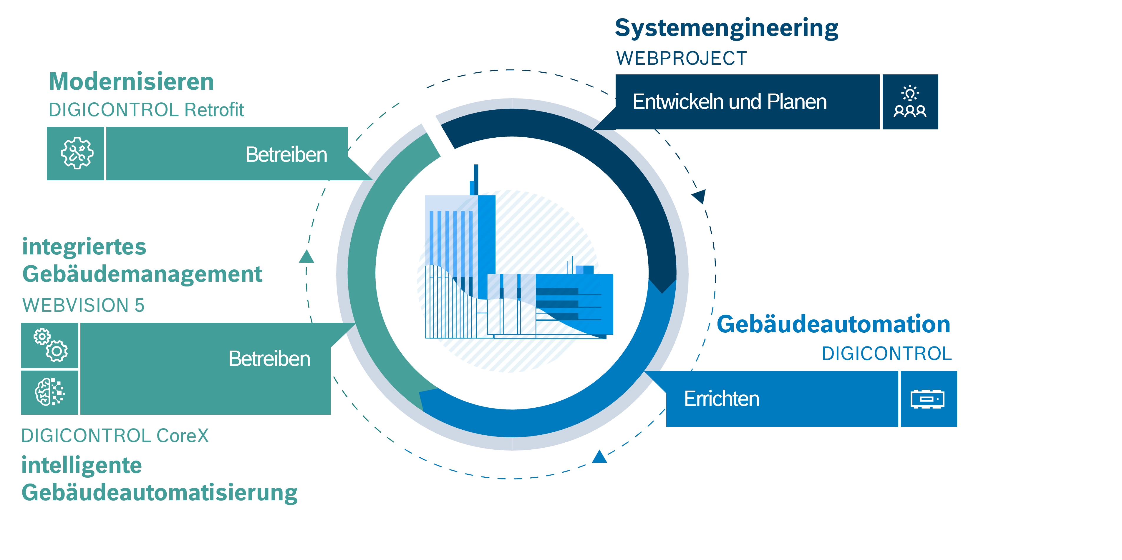 100 % durchgängige Gebäudeautomationslösungen – über den gesamten Gebäudelebenszyklus