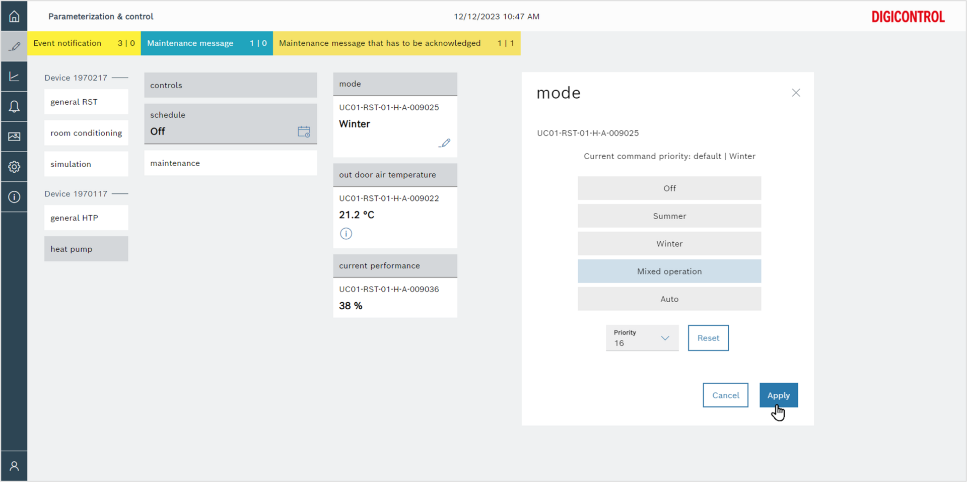 DIGICONTROL webUI ensures the convenient and safe operation of your plants across all automation devices and sets of controllers. The attractive colour scheme in the new design and the user-friendly arrangement of the operating elements ensure simple and intuitive operation of the application.