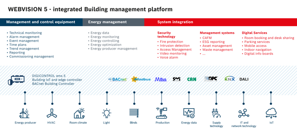 WEBVISION 5 uses the communication standards commonly used in building technology to link the building systems into a holistically functioning network.