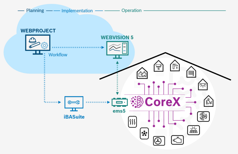 The separation of software and hardware offers considerable advantages for all parties involved: modern communication technologies (IoT) can bring additional added value to the building, as digital twins, AI-supported simulations and optimizations take place in the cloud. ☝️ A new field of activity that will change the building automation world of tomorrow. With the further development of CoreX, WEBVISION 5 and WEBPROJECT, we are actively shaping this change.